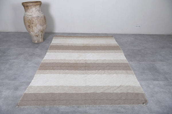 This handmade Moroccan Boucherouite rug is crafted entirely from natural wool, offering both durability and rich texture. Its earthy palette—featuring shades of rust, olive, ivory, and charcoal—unfolds in bold geometric motifs and tribal-inspired shapes. Woven by Berber women in the Atlas Mountains, each detail carries generations of symbolism and artistry. This medium-sized piece makes a grounded statement in living rooms, bedrooms, or creative workspaces.