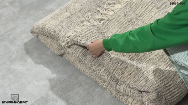Each rug is handwoven with meticulous care, reflecting generations of traditional weaving expertise and artisanal craftsmanship. Its neutral tones and minimalist design blend effortlessly with a variety of décor styles—from modern minimalism to rustic and bohemian—adding elegance and warmth to any interior.