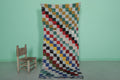 This colorful Moroccan Berber rug features a lively patchwork of geometric shapes and tribal motifs, handwoven from wool and recycled textiles. The rich palette of coral, turquoise, mustard, deep navy, and cream creates a lively and dynamic visual experience. Its generous runner size makes it perfect for hallways, living rooms, or creative spaces seeking a warm, textured focal point.